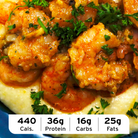 INGREDIENTS: SHRIMP, WATER, CHEDDAR CHEESE (PASTEURIZED MILK, CHEESE CULTURE, SALT, ENZYMES), ENRICHED DEGERMED YELLOW CORN GRITS (YELLOW CORN GRITS, FERROUS SULFATE, NIACIN, THIAMINE MONONITRATE, RIBOFLAVIN, FOLIC ACID), CREAM, SALTED BUTTER (PASTEURIZED CREAM, SALT), CONTAINS LESS THAN 2% OF SALT, SODIUM PHOSPHATES, SPICES, GARLIC SAUCE (ROASTED GARLIC, CANOLA OIL, PARMESAN CHEESE, GARLIC, PARSLEY, SALT, SUGAR, SPICES, XANTHAN GUM), SEA SALT, HERBS AND SPICES, VINEGAR, GARLIC, SUGAR, SPICES, SALT, CAYENNE PEPPER, XANTHAN GUM